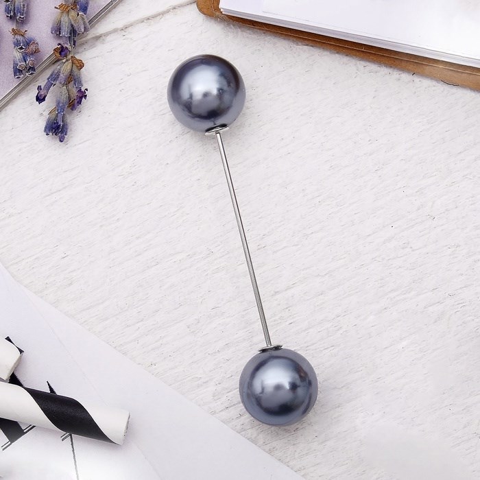 Булавка "Две жемчужины", 6,5 см, цвет серый в серебре 1353691