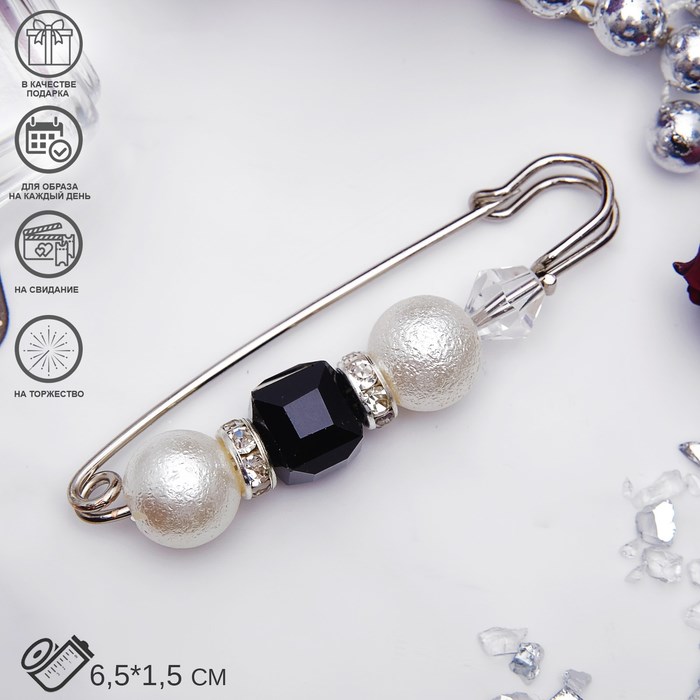 Погрузитесь в мир стильных аксессуаров с оригинальной булавкой, которая станет ярким акцентом вашего образа. Длина 6,5 см и сочетание белого и чёрного цветов в серебристой фурнитуре делают её универсальным дополнением для любого наряда. Эта булавка из коллекции «Жемчуг» идеально подходит для женщин, стремящихся подчеркнуть свою индивидуальность.