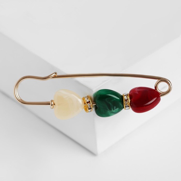 Булавка «Сердечки», 7 см, цветная в золоте 5511144
