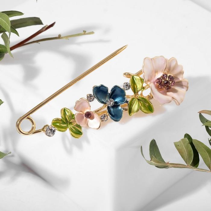 Изысканный дизайн: цветочная тематика с яркими вставками из страз и эмали делает булавку настоящим произведением искусства.