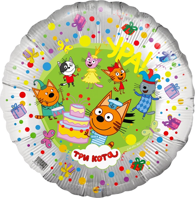 Д 18 Круг Три Кота, Серебро / 1 шт /, Фольгированный шар