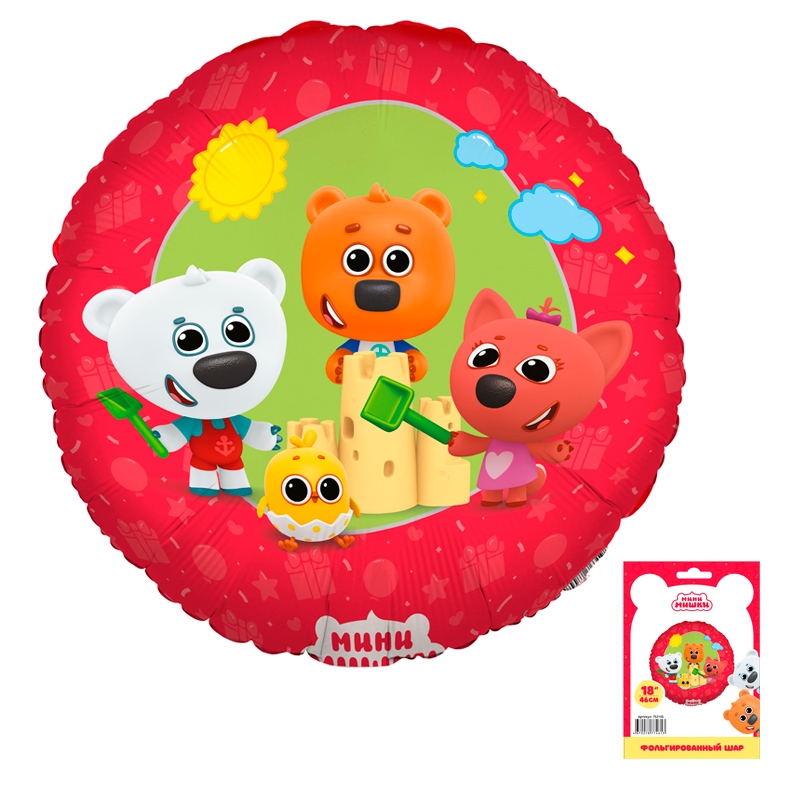 К 18 Круг Мини-мишки в упаковке / 1 шт /, Фольгированный шар