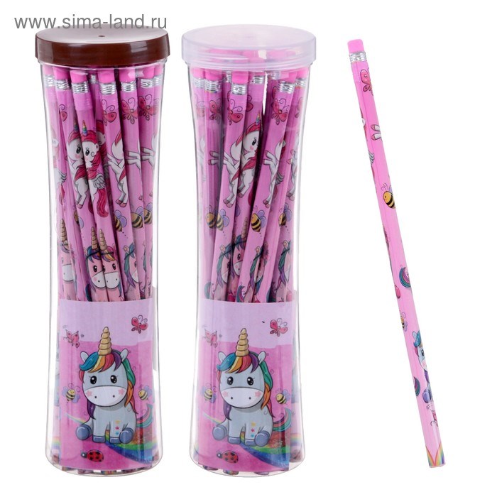 Карандаш чернографитный с ластиком «Единорог», твёрдость НВ