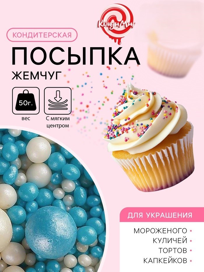 Кондитерская посыпка с мягким центром "Жемчуг" бело-голубая, 50 г 5070127