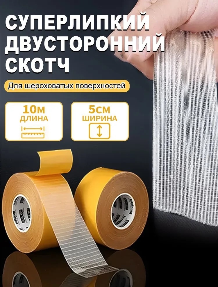 Лента клейкая двусторонняя на тканевой основе, суперпрочная 5 см*10 м