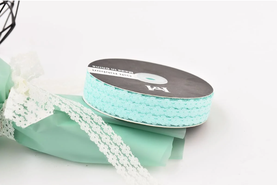 Лента кружевная дизайн «3 Цветка» (2,5см х 35 ярд) Бирюзовый