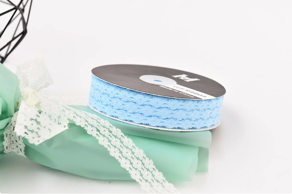 Лента кружевная дизайн «3 Цветка» (2,5см х 35 ярд) Голубой