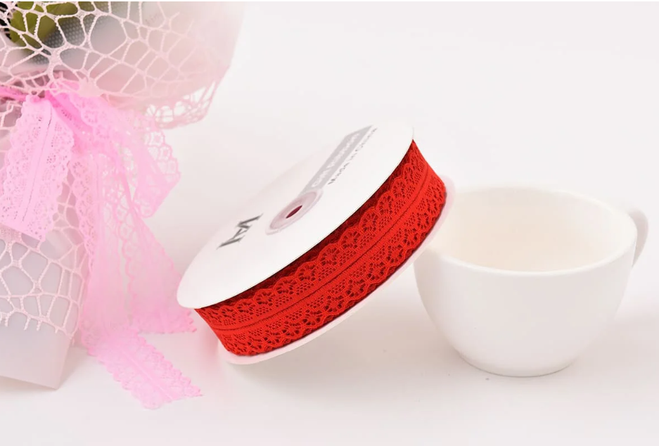 Лента кружевная с полоской (3см х 50 ярд) Красный
