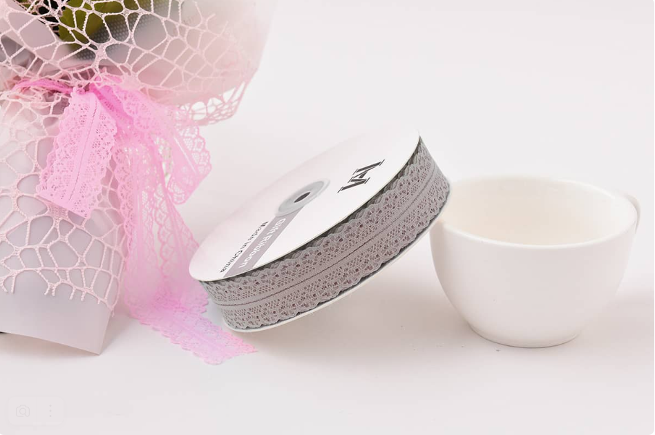 Лента кружевная с полоской (3см х 50 ярд) Серый