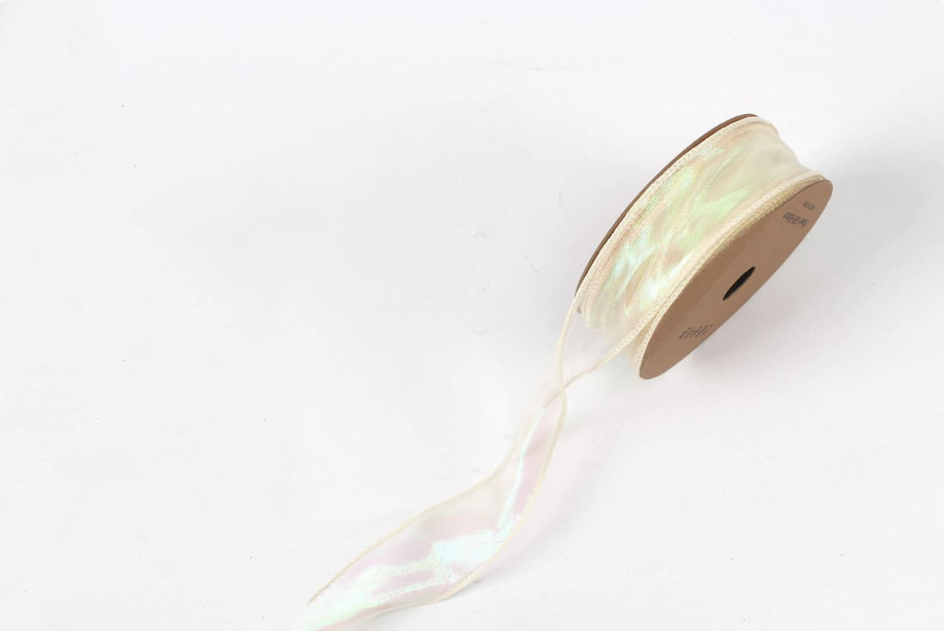 Лента мелкая сетка перелив цвета «Симфония» (4,0см х 10ярд) Кремовый