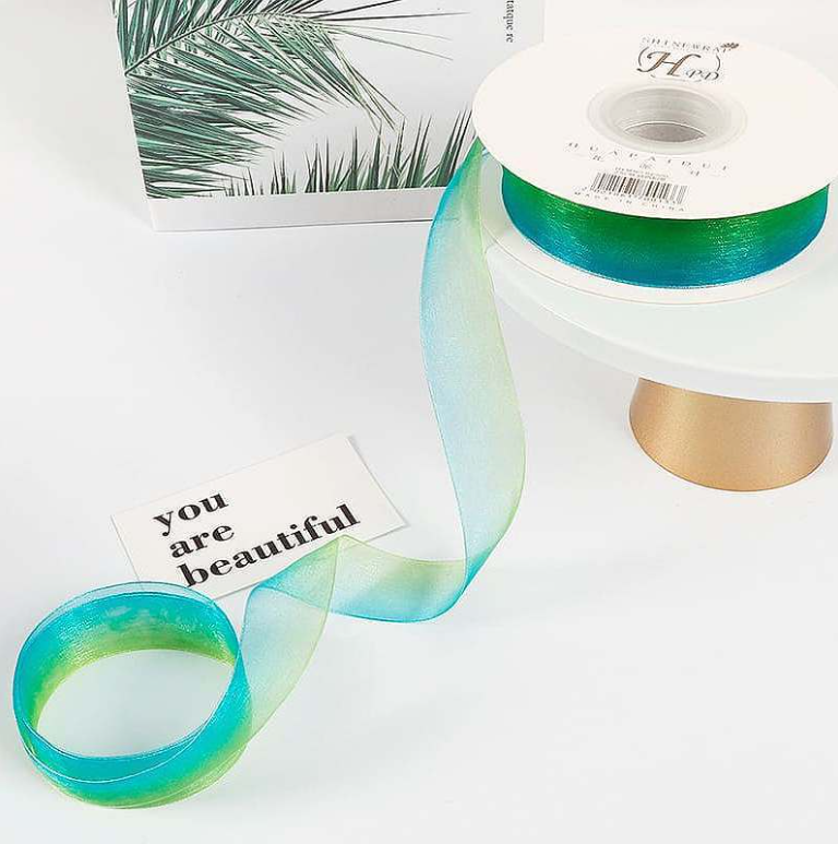 Лента органза с переливом цвета (2,5см х 30ярд) Голубой и Салатовый