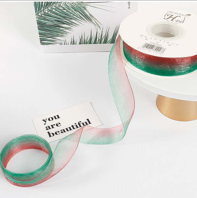 Лента органза с переливом цвета (2,5см х 30ярд) Красный и Зелёный