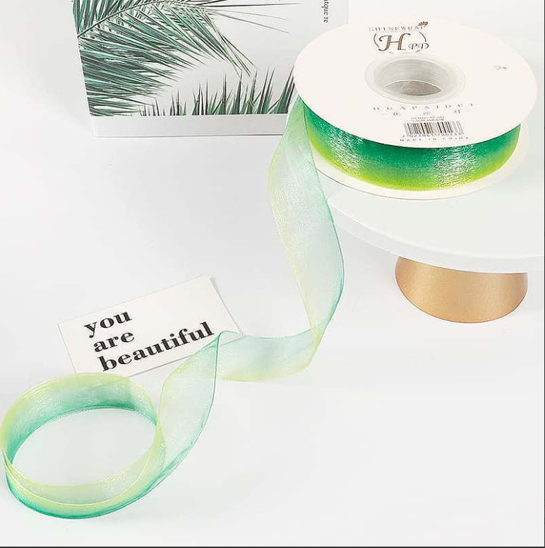 Лента органза с переливом цвета (2,5см х 30ярд) Зелёный и Жёлтый