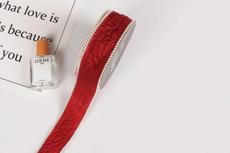Лента органза жатая «Бусины» (4,0см х 5ярд) Бордовый