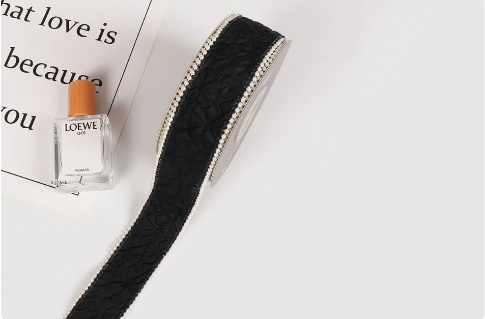 Лента органза жатая «Бусины» (4,0см х 5ярд) Чёрный