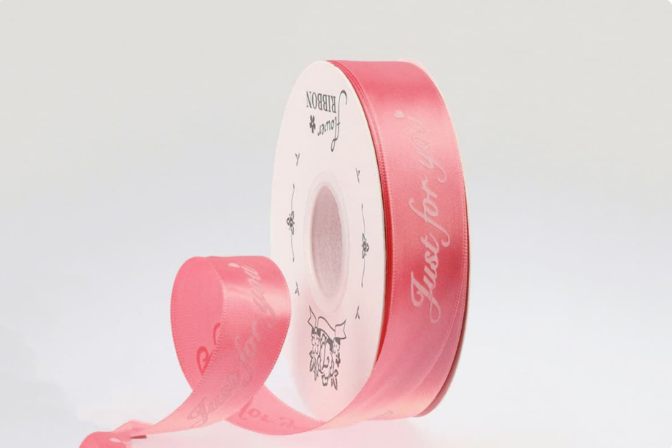 Лента шёлковая «Just for you» (2,5см х 33ярд) Тёмно-розовый