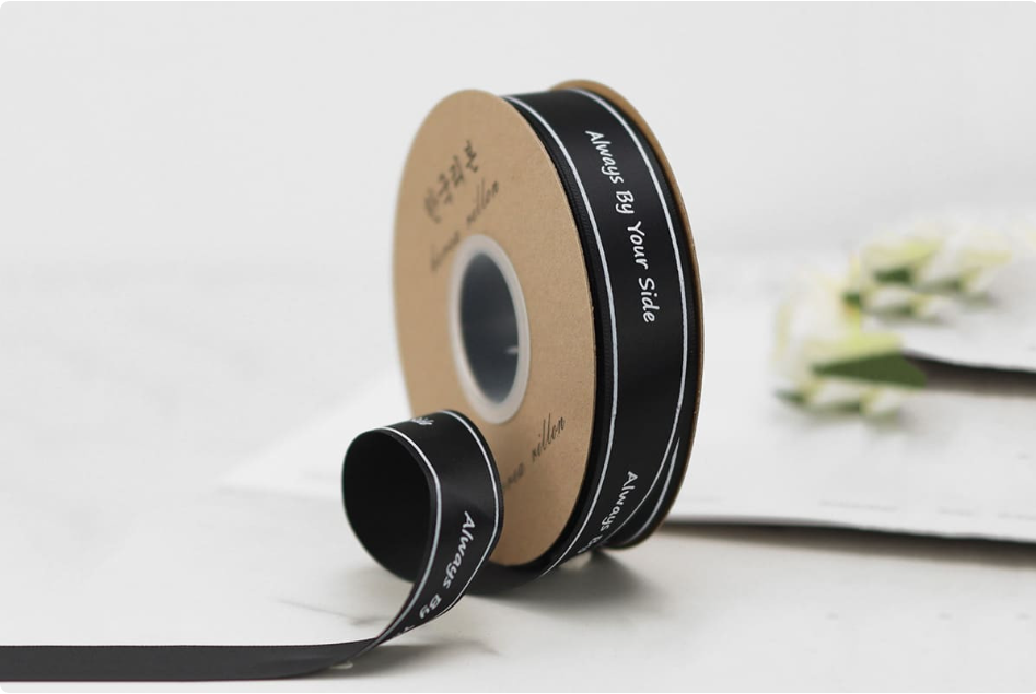 Лента шёлковая кайма «Всегда с тобой» (2,5см х 40ярд) Чёрный