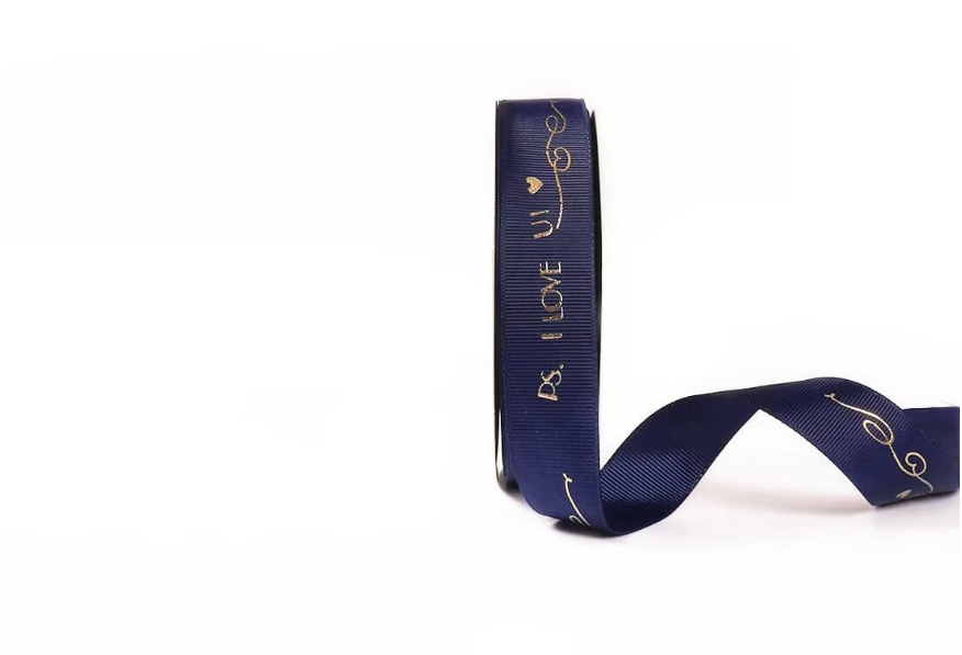 Лента шёлковая премиум «I Love U!» (2,5см х 45ярд) Тёмно-синий