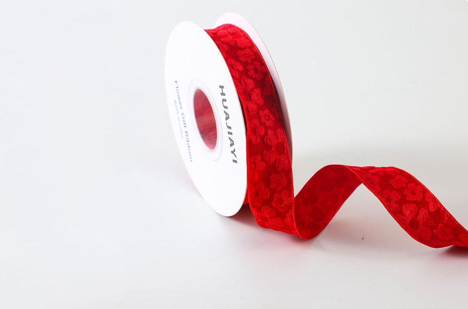 Лента текстильная рельефная «Цветы» (2,5см х 10ярд) Красный