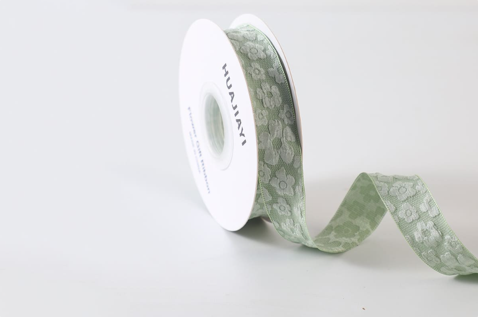 Лента текстильная рельефная «Цветы» (2,5см х 10ярд) Зелёный