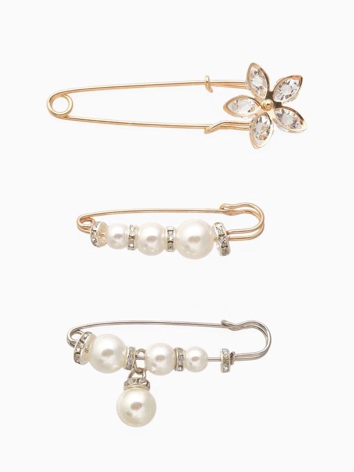 Набор булавок(3шт)«Жемчужины и цветы»,7,5см,цвет бел в золот и сереб 7165053