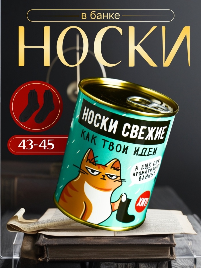 Носки в банке АРОМА "Свежие,как твои идеи". Апельсин (мужские,цвет черный) 4702781