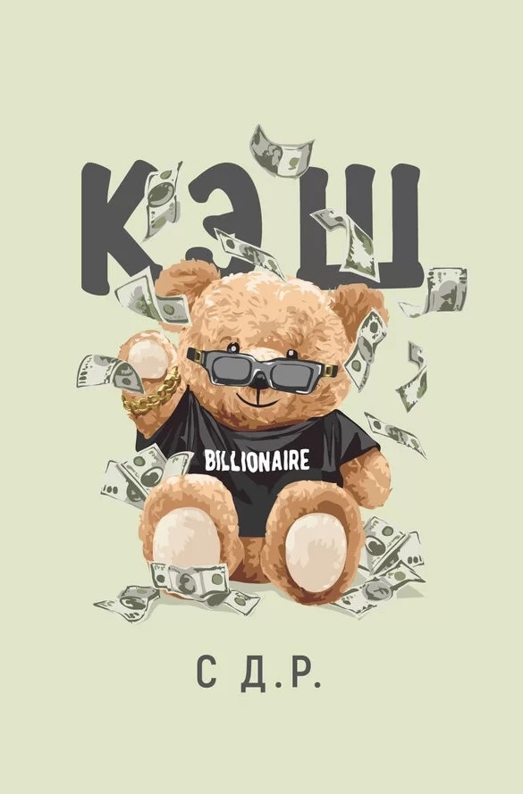 Открытка, С Д.Р. (мишка с долларами), 10*15 см, 1 шт.
