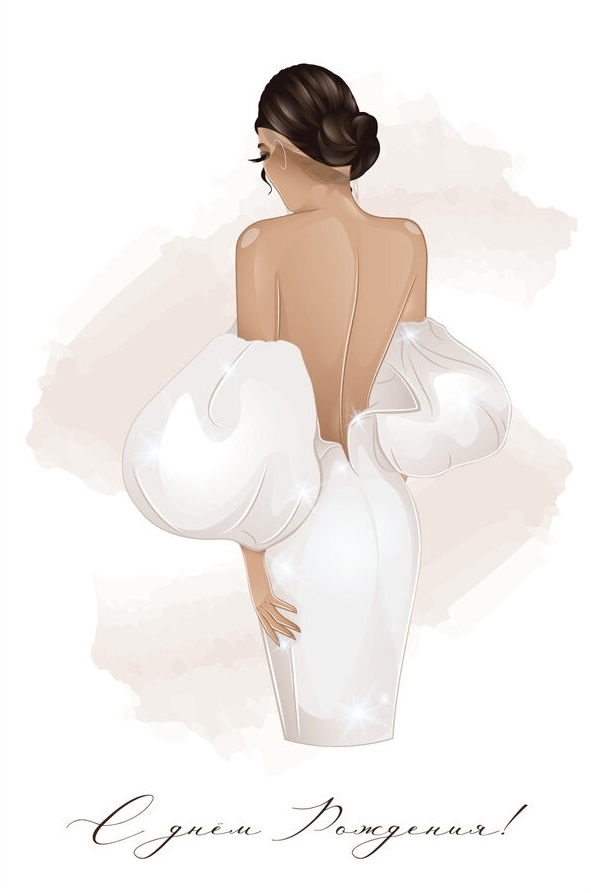 Открытка, С Днем Рождения! (девушка в белом платье), 10*15 см, 1 шт.