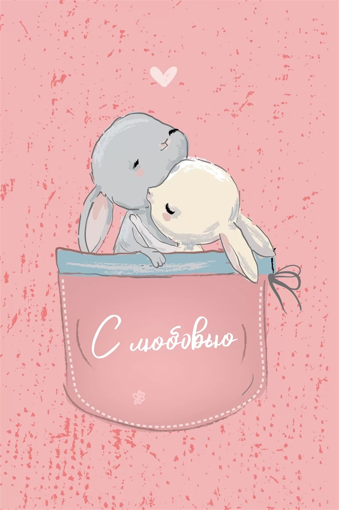Открытка, С любовью (зайчики в кармашке), Розовый, 10*15 см, 1 шт.