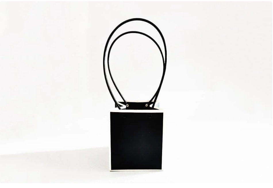Пакет для цветов крафт форма-2 размер L (13 х 12.5 х 15см) 10 шт Чёрный с белым