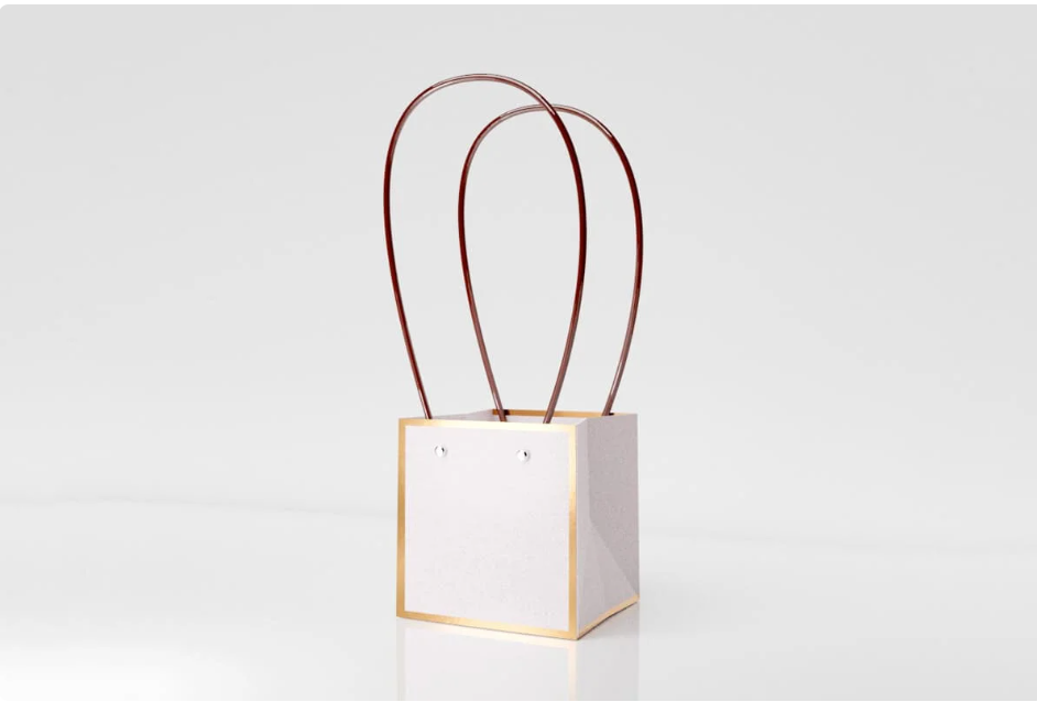Пакет для цветов крафт «Золотая окантовка» форма-2 размер L (13 х 12.5 х 15см) 10 шт Белый, плотность 230 гр