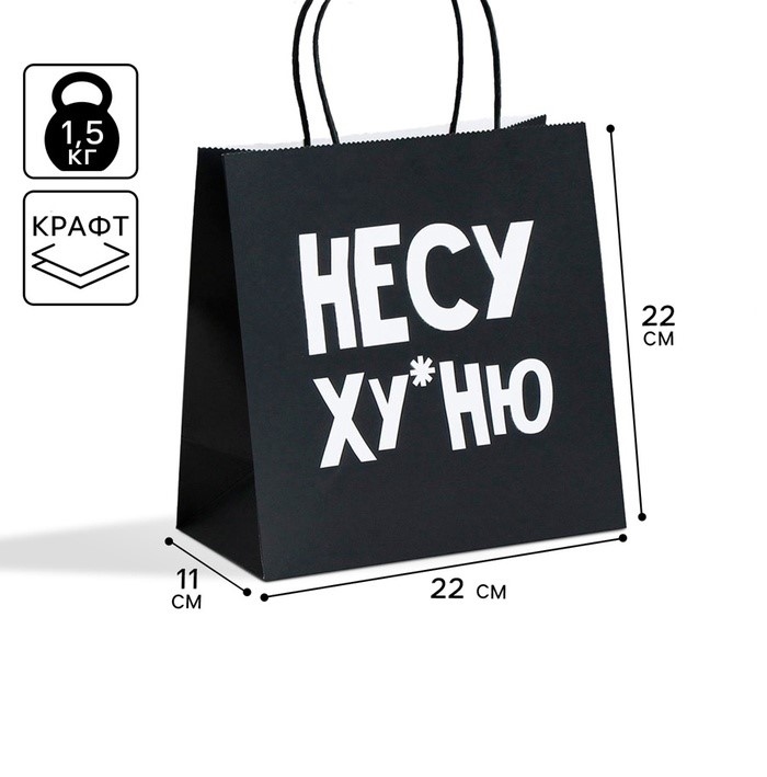 Пакет подарочный «Несу Ху*ню», 22 х 22 х 11 см 3907834
