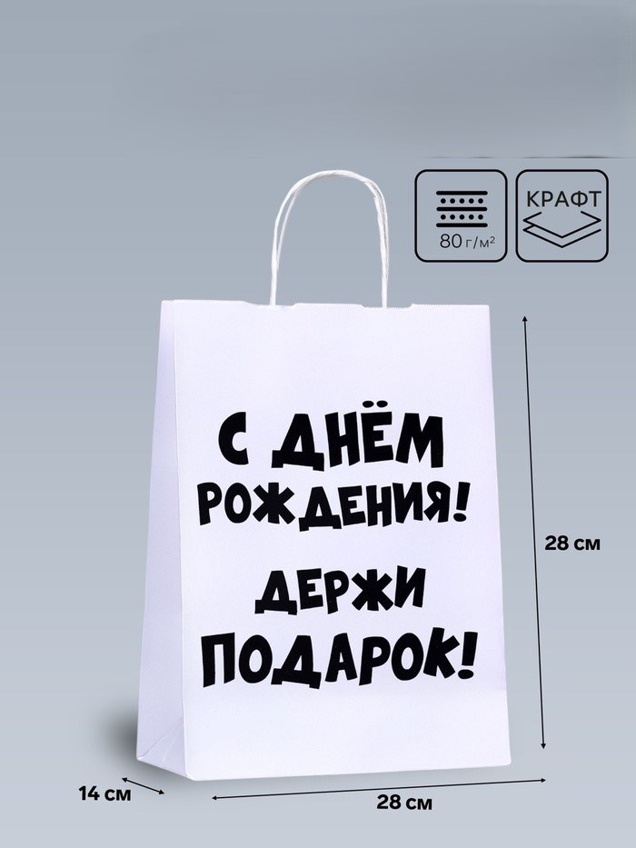 Пакет подарочный крафтовый с приколом подойдет для упаковки подарков на любой праздник и отличным дополнением к основному подарку и подчеркнет ваше особое отношение к получателю.