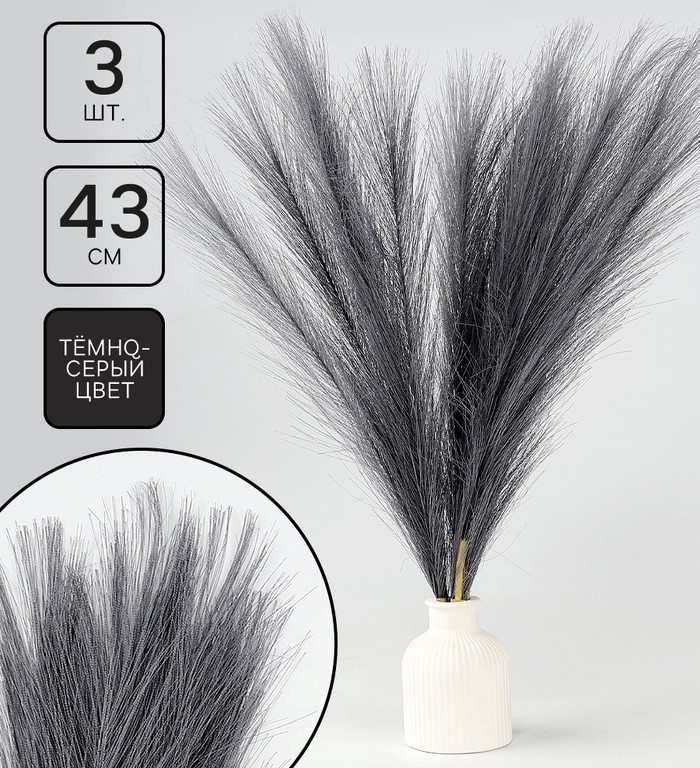 Пампасная искусственная трава, высота 43 см, набор 3 шт, цвет тёмно-серый 10629669
