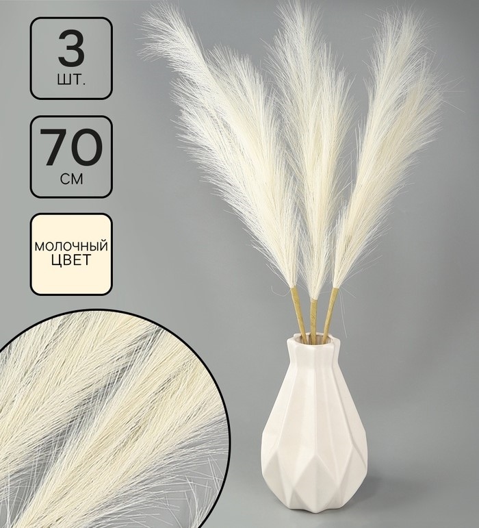 Пампасная искусственная трава, высота 70 см, набор 3 шт, цвет молочный 10629667