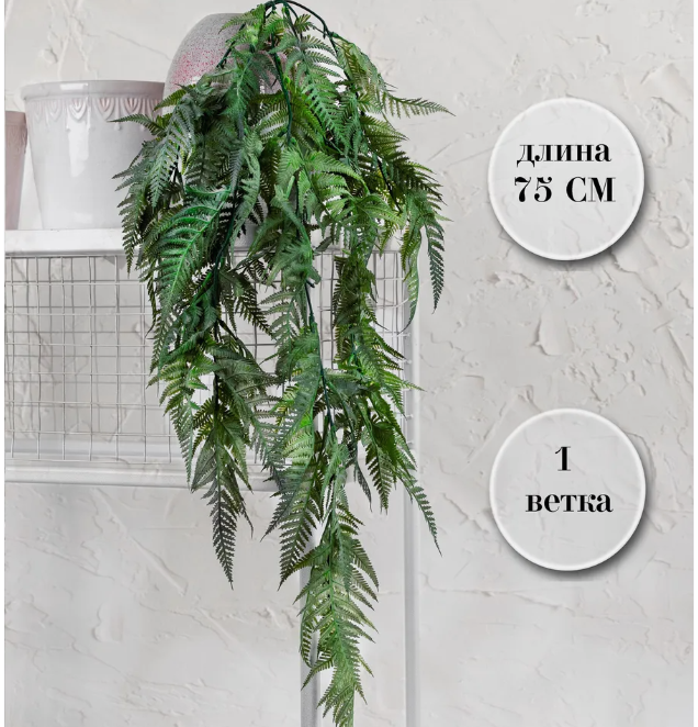 Папоротник ампельный Зеленый с Белым напылением 75 см т.м.300 (2)
