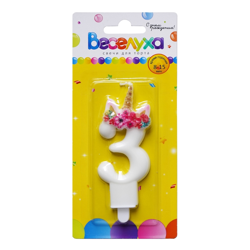 Свеча тортовая цифра "Единорог" 3 / 1 шт., 8 см /