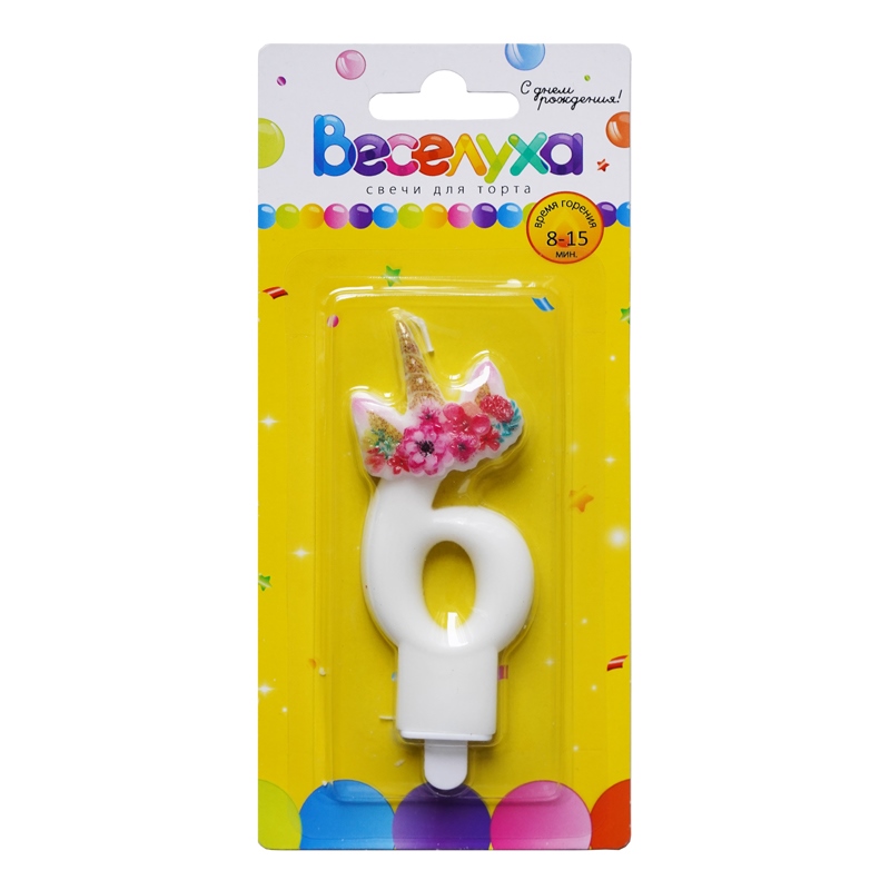 Свеча тортовая цифра "Единорог" 6 / 1 шт., 8 см /