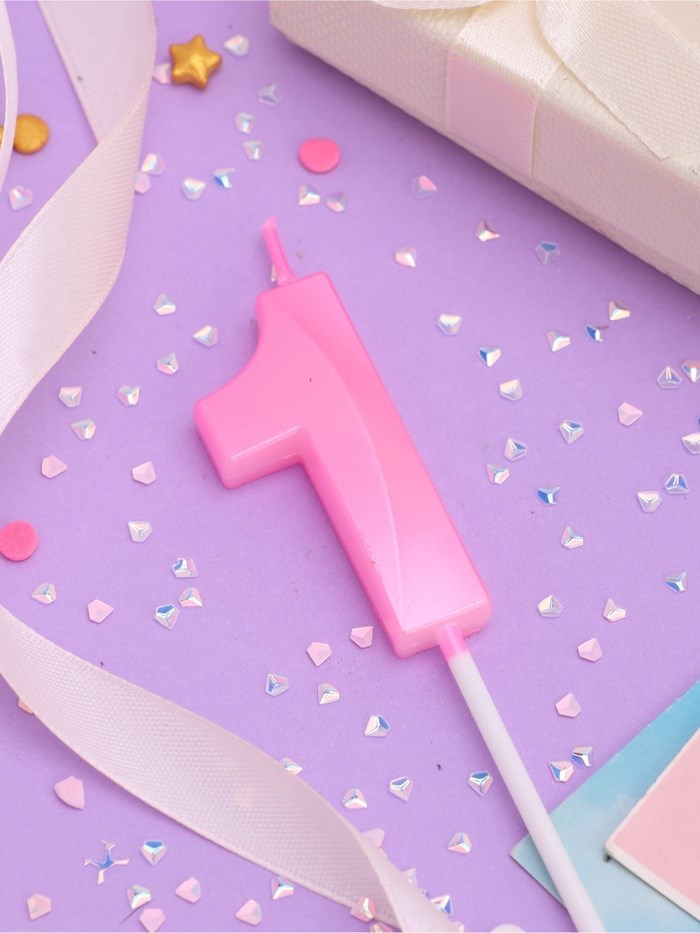 Свеча в торт на шпажке «Грань», цифра "1", 5 см, розовая 10319361