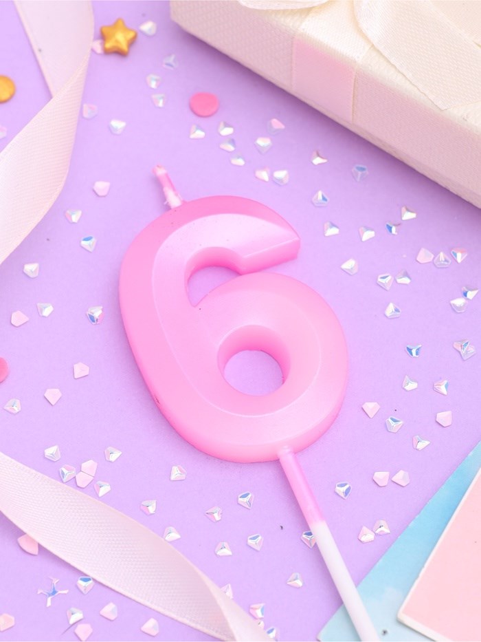 Свеча в торт на шпажке «Грань», цифра "6", 5 см, розовая 10330401