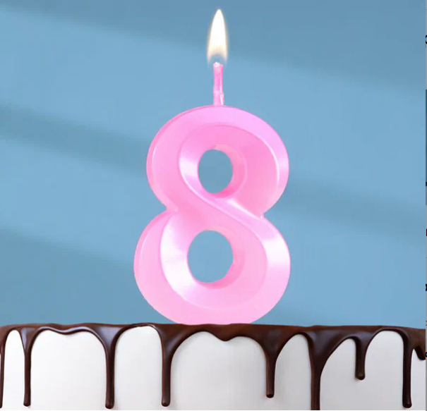 Свеча в торт на шпажке «Грань», цифра "8", 5 см, розовая 10330402