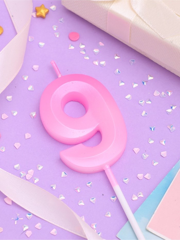 Свеча в торт на шпажке «Грань», цифра "9", 5 см, розовая 10330403