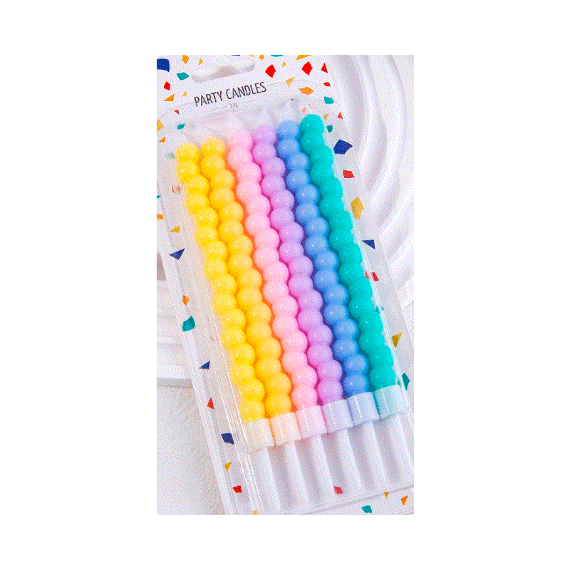 Свечи тортовые классические "Пузыри" (Пастель разноцветная) с держателями / 6 шт., 12 см /