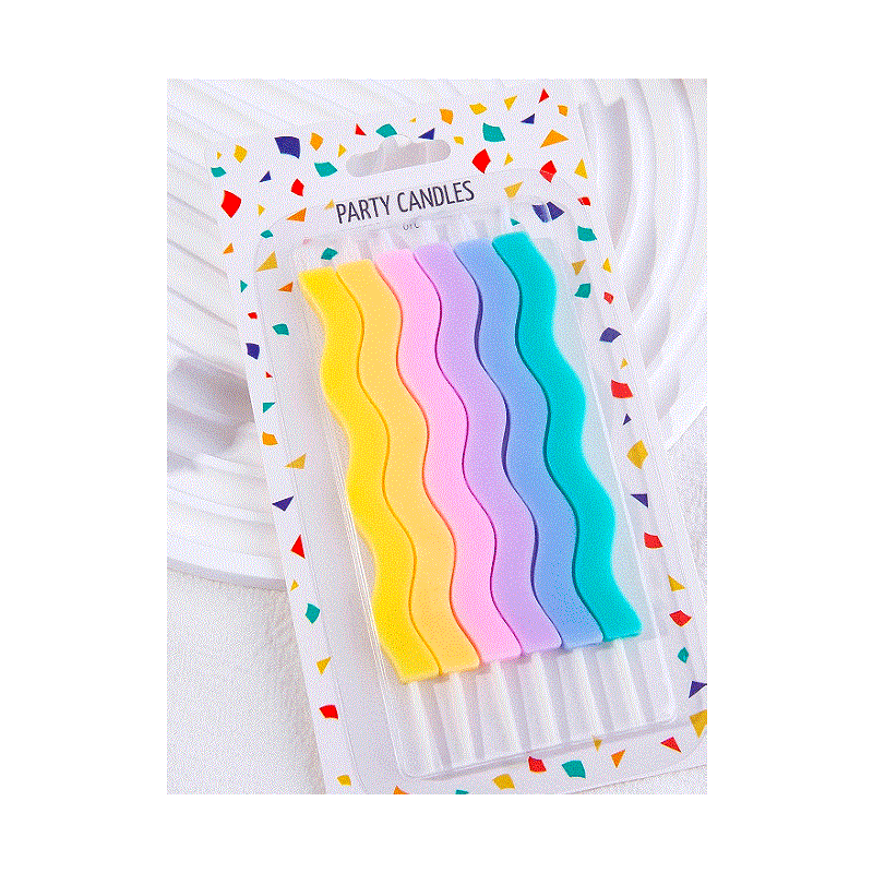 Свечи тортовые классические "Волны" (Пастель разноцветная) с держателями / 6 шт., 10 см /