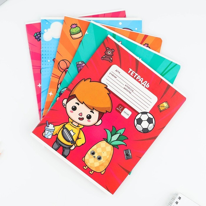 Тетрадь 12 листов в линейку, А5, на скрепке, блок №2 «Тока» МИКС