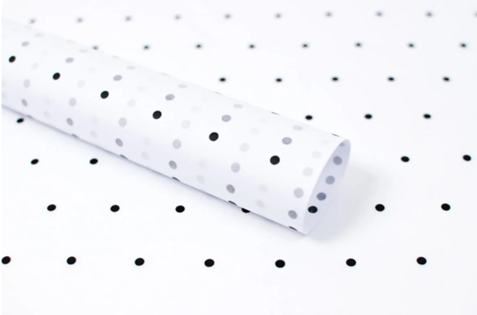 Тишью бумага с принтом «Мелкая точка» 17гр 50см х 70см х 28шт Белый и Чёрный, плотность 17 гр