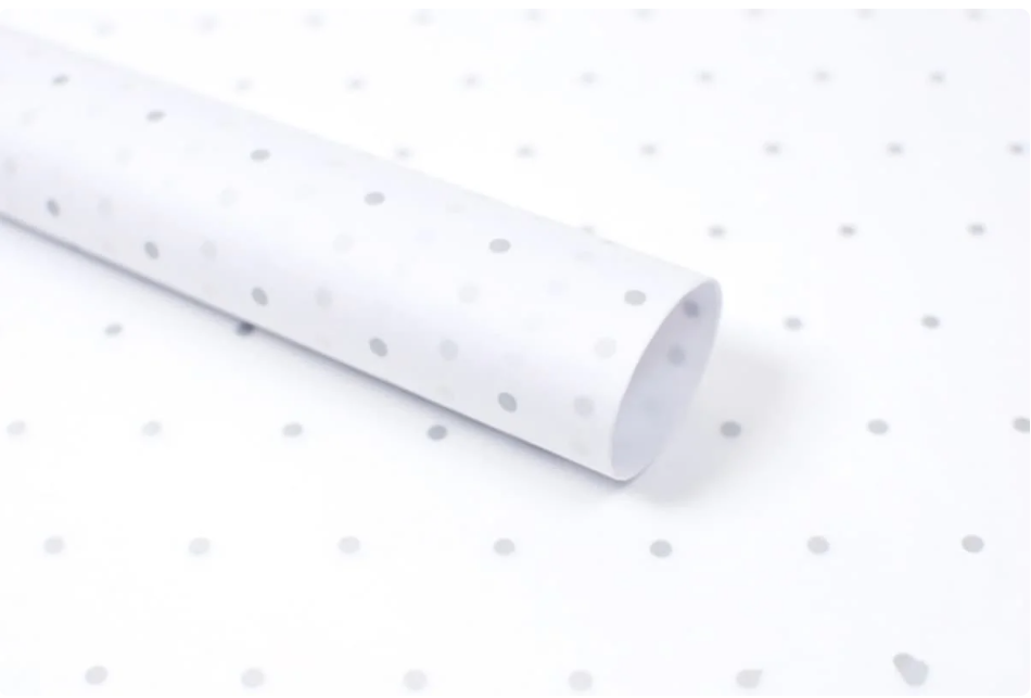 Тишью бумага с принтом «Мелкая точка» 17гр 50см х 70см х 28шт Белый и Серебро, плотность 17 гр