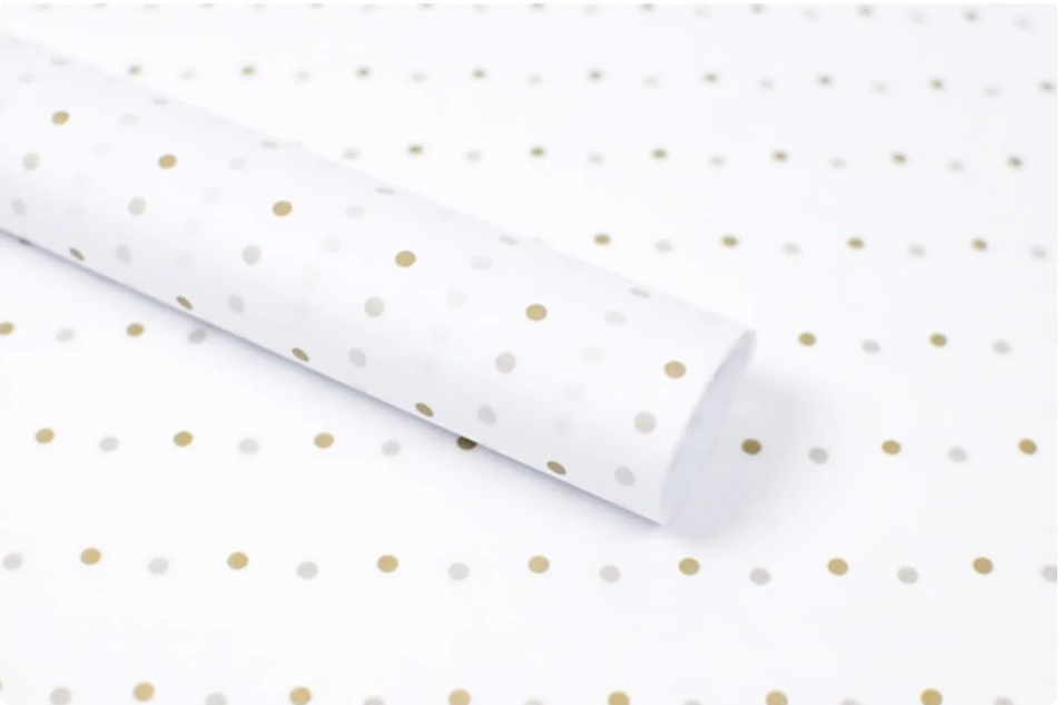 Тишью бумага с принтом «Мелкая точка» 17гр 50см х 70см х 28шт Белый и Золотой, плотность 17 гр