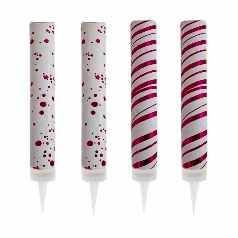 Тортовая свеча "Полоски и Точки" Микс с печатью Роза голд 10 см, 30 сек. / 4 шт. /