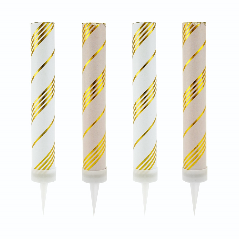 Тортовая свеча "Полоски" Микс Нежно-розовый и белый с золотой печатью 10 см, 30 сек. / 4 шт. /